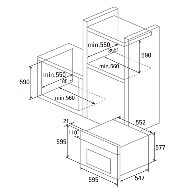 - Dimensions of the niche for installation (WxDxH) 552×547×577