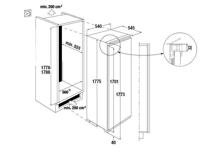 - Max. door opening angle 90°