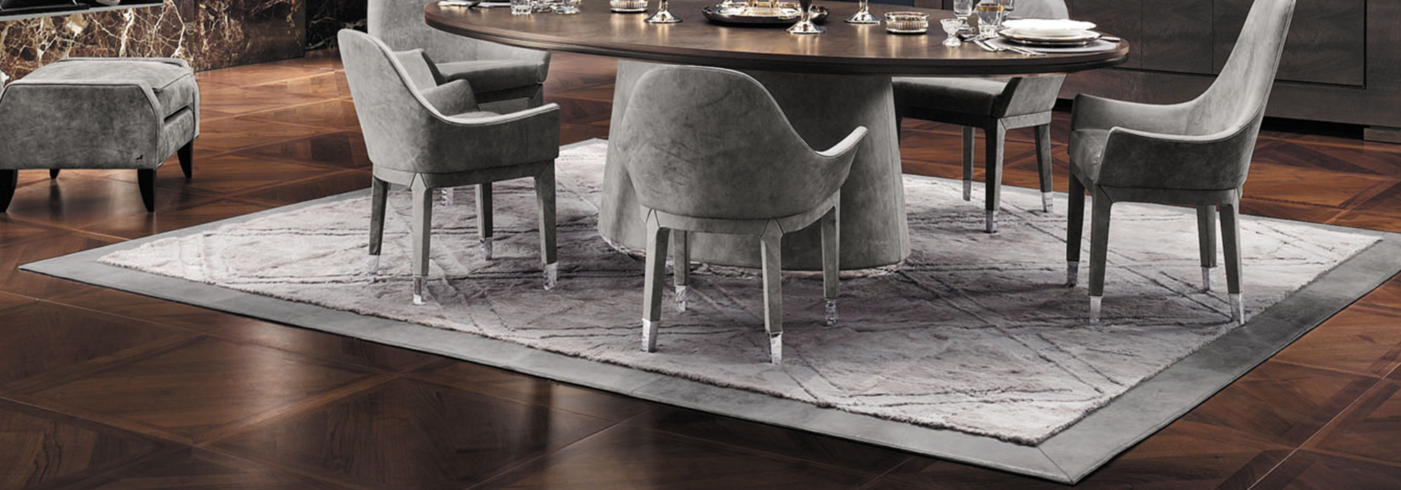 Carpet made of natural lapin with laser decoration in the form of diamonds and a leather edge.