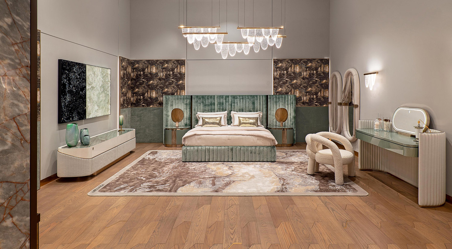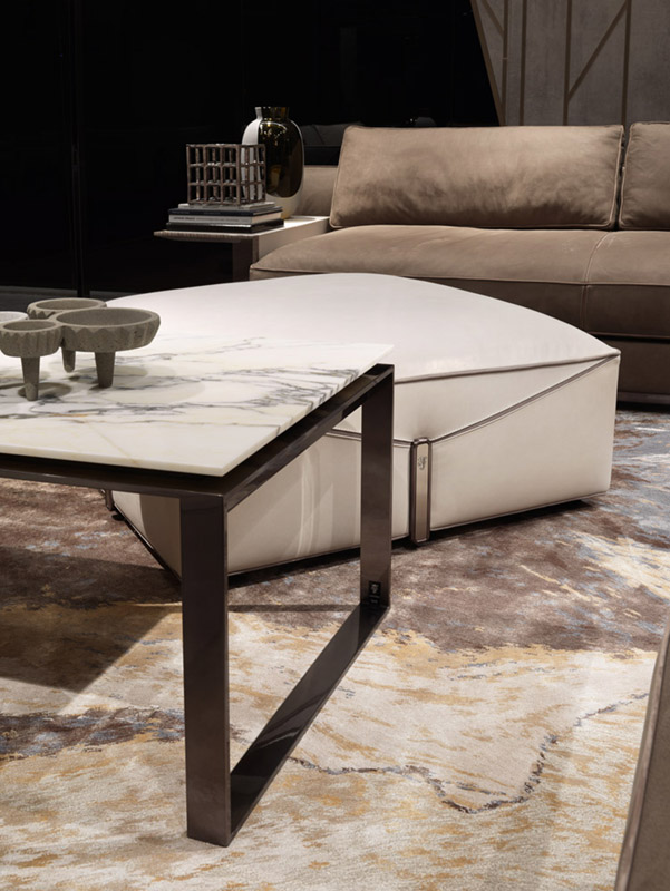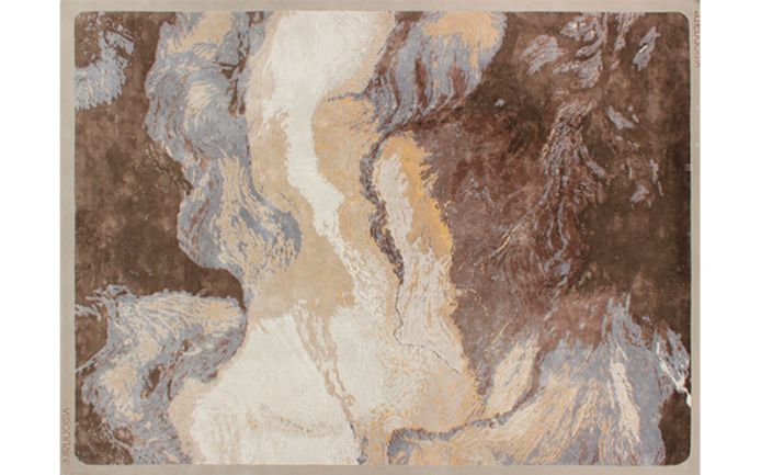 Hand-tufted carpet in bamboo silk and New Zealand wool with carving work.Cotton backing.