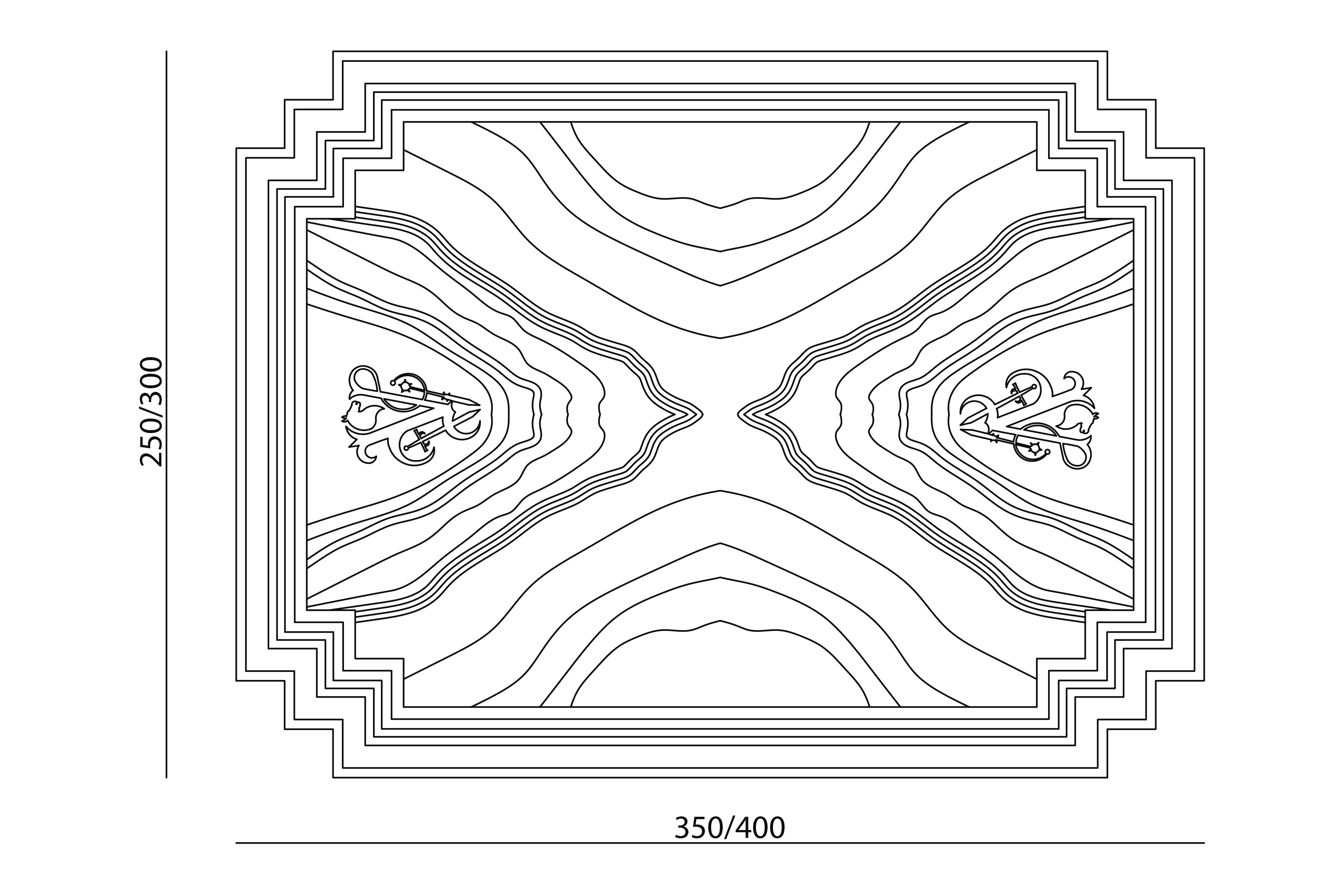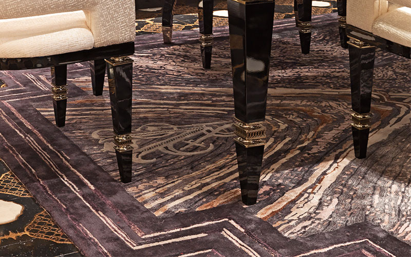 Carpet in bamboo silk, handcrafted in high-definition of details, shades of color emphasized by “carving” handwork, over 150 color tones, inserts in extremely fine pure silk for more detailed shades.