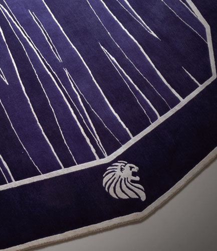 Hand knotted blue carpet in combination of wool & 100% silk with Giorgio Collection logo. Custom made.