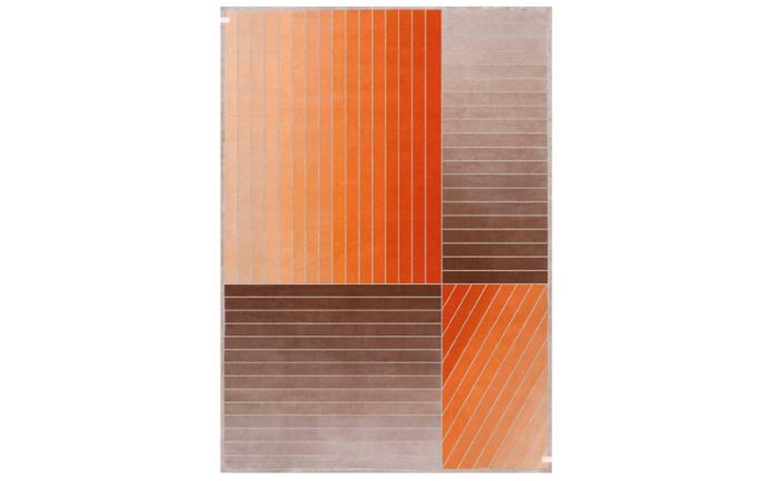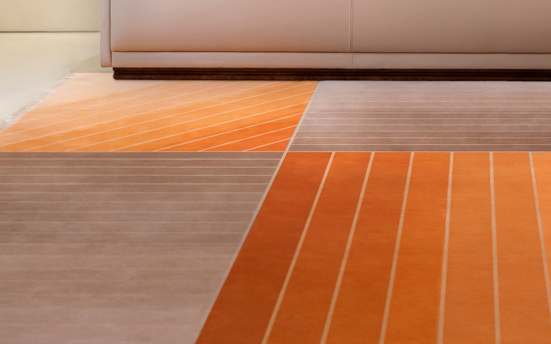 The carpet with the orange stripes of the Madison collection is hand-knitted on a loom made of 15% wool and 85% silk. The textured and bright design creates an atmosphere of modern and limitless atmosphere. Turri carpets can be personalized in size and color.