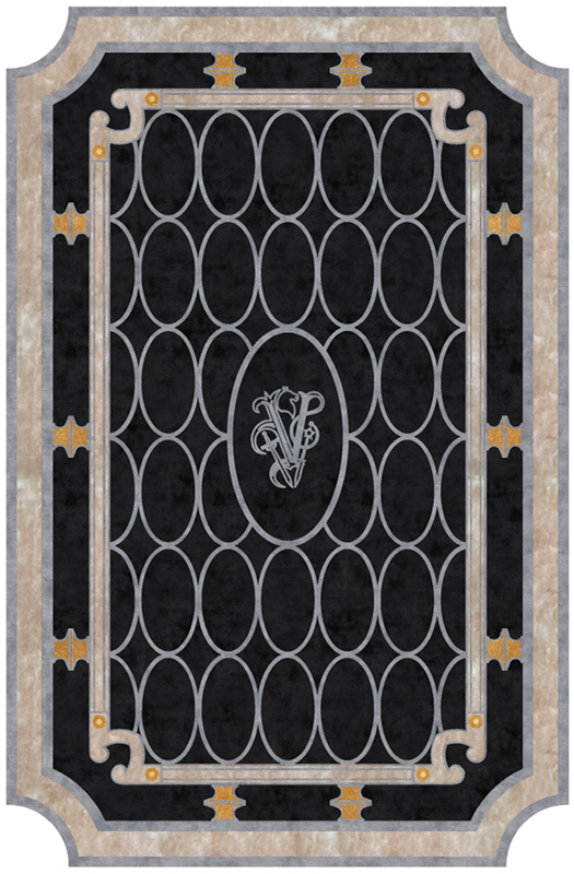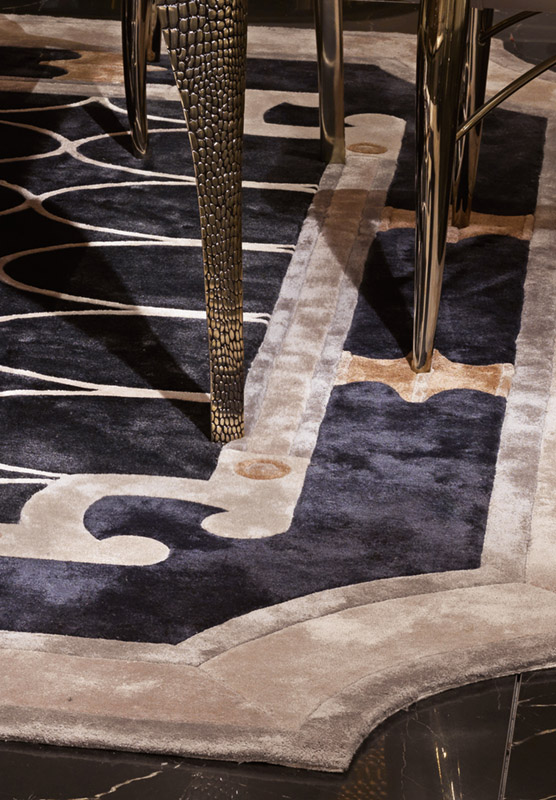 Carpet in wool and bamboo silk, “carving” working for the central logo.
