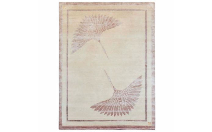 The carpet with the phoenixes of the Noir collection is hand-knitted on a loom and consists of 70% wool and 30% silk. The elegant colors of this accessory welcome the sophisticated design, stylization of two phoenixes flying towards each other. Turri carpets can be personalized in size and color.