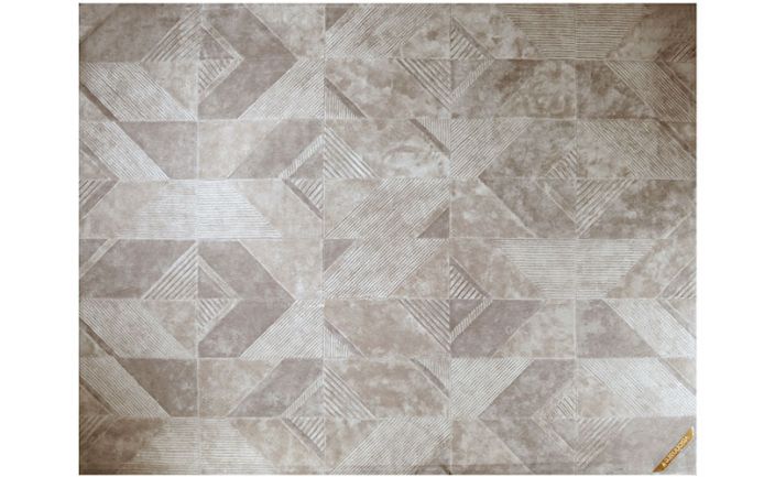 Hand-tufted carpet. 100% bamboo silk. Tone-ontone geometrical pattern with bas rilief work. A corner contains an insert in satinized brass with Visionnaire logo engraved in bas-relief. Backing in cotton.
