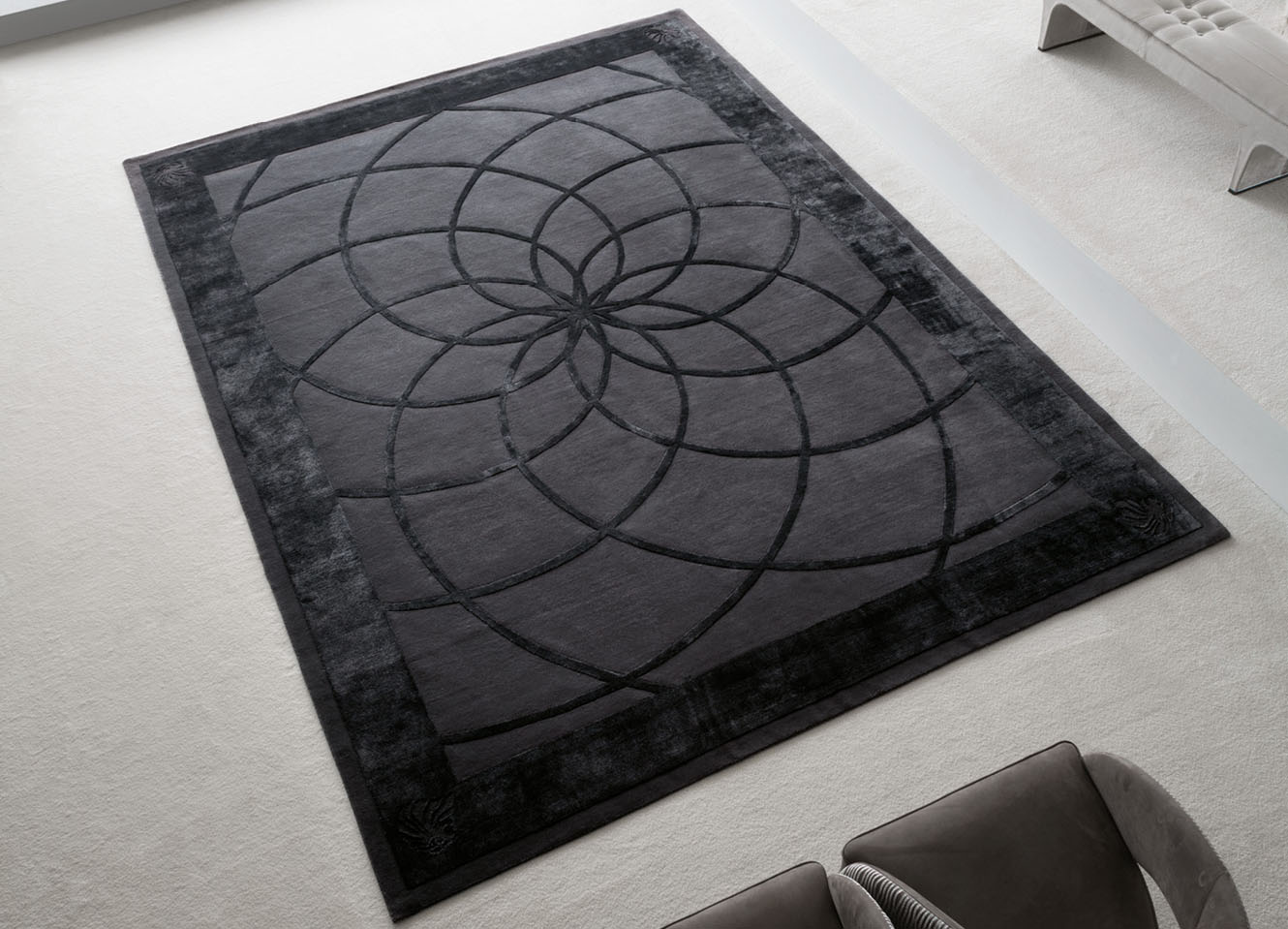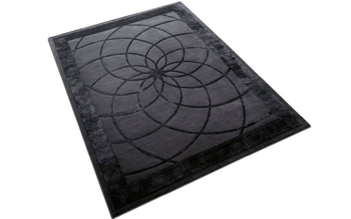 Hand knotted black carpet in combination of wool & 100% silk. Custom made.