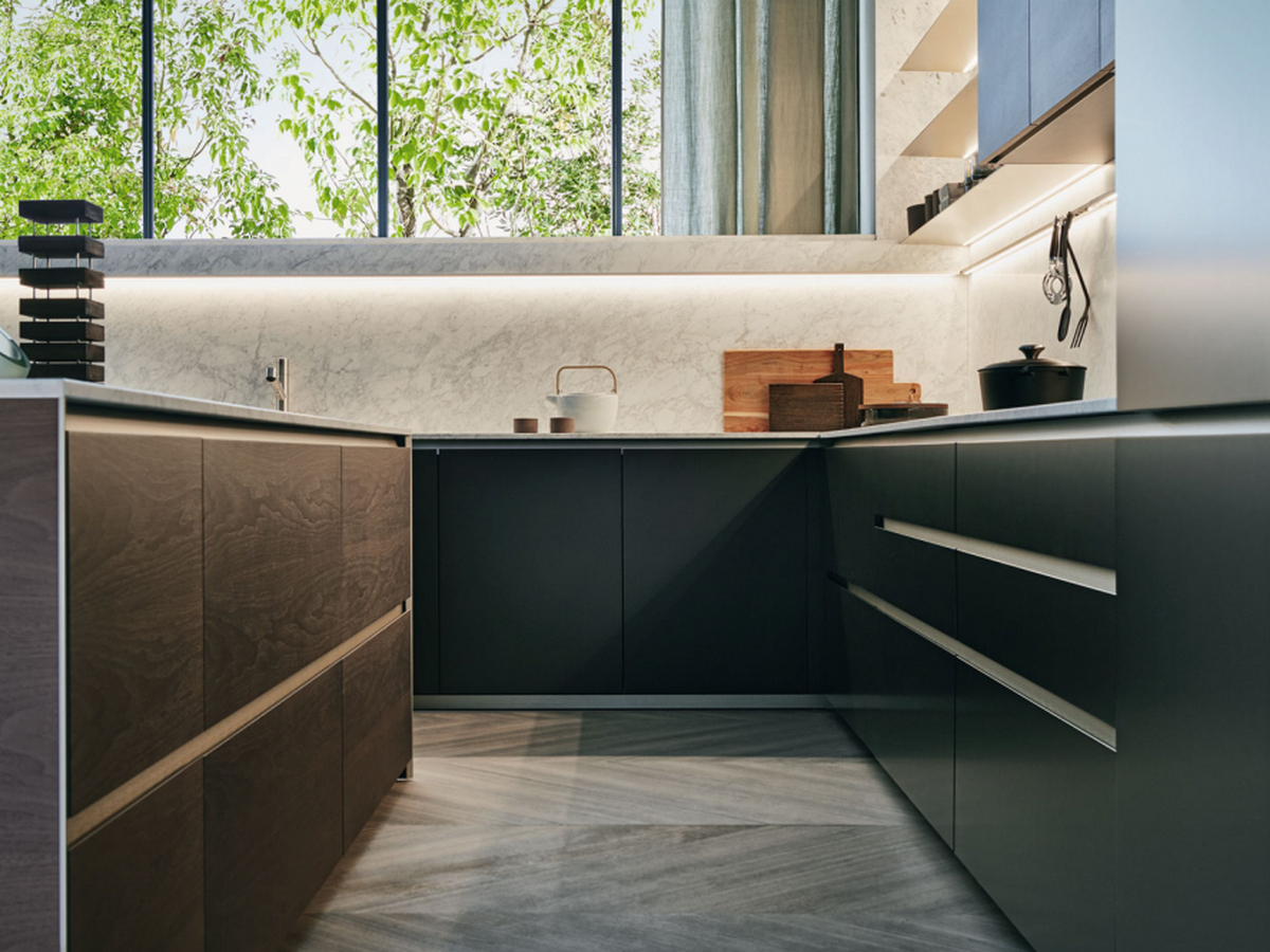 Prime is designed to express the full potential of a kitchen featuring recessed opening. It comes in a range of different compositions designed to meet the most sophisticated aesthetic demands.