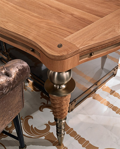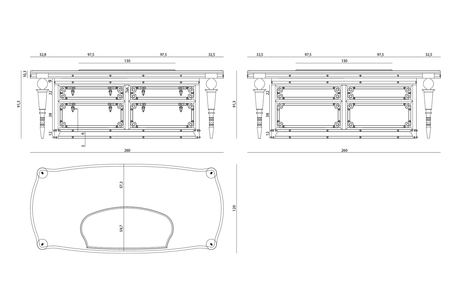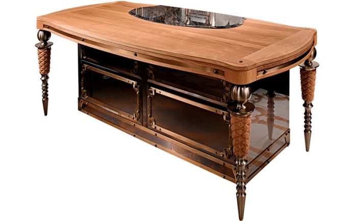 Structure in wood. Doors and panels covered of brushed stainless steel black nickel lacquered, with decorative outlines and fixing studs in antique brass.
