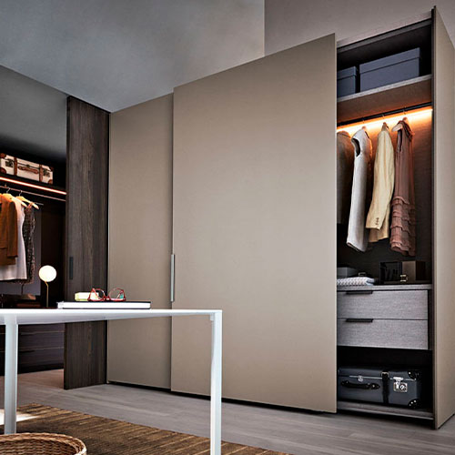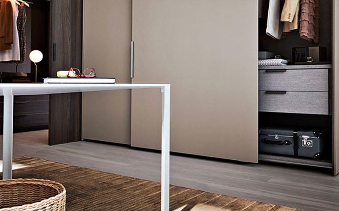 The Start door with its linear design makes it possible to create solutions with hinged, sliding or flush sliding doors. All types of openings have shock absorbers to facilitate opening and closing.