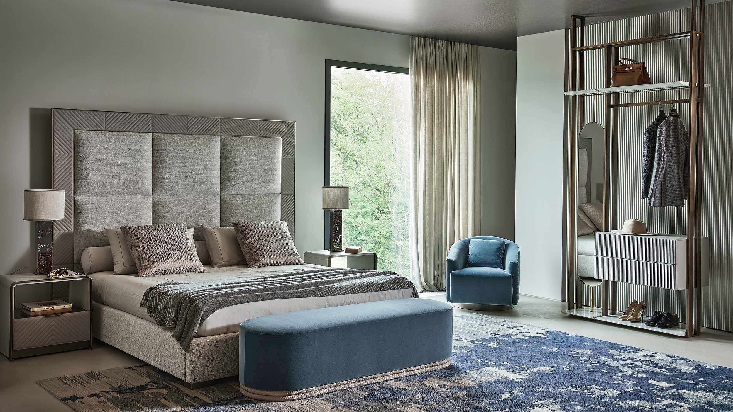The Matisse dressing room consists of two different modules that can be placed in both small and large rooms. The first module is equipped with four drawers and can be used with the second module with two drawers and a convenient rotating mirror.