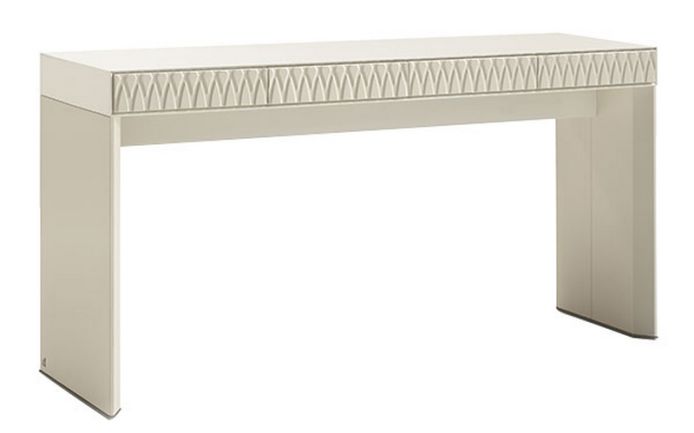 Opaque or tobacco-opaque rosewood console with 4 drawers and legs upholstered in leather, finished in polished black nickel steel.