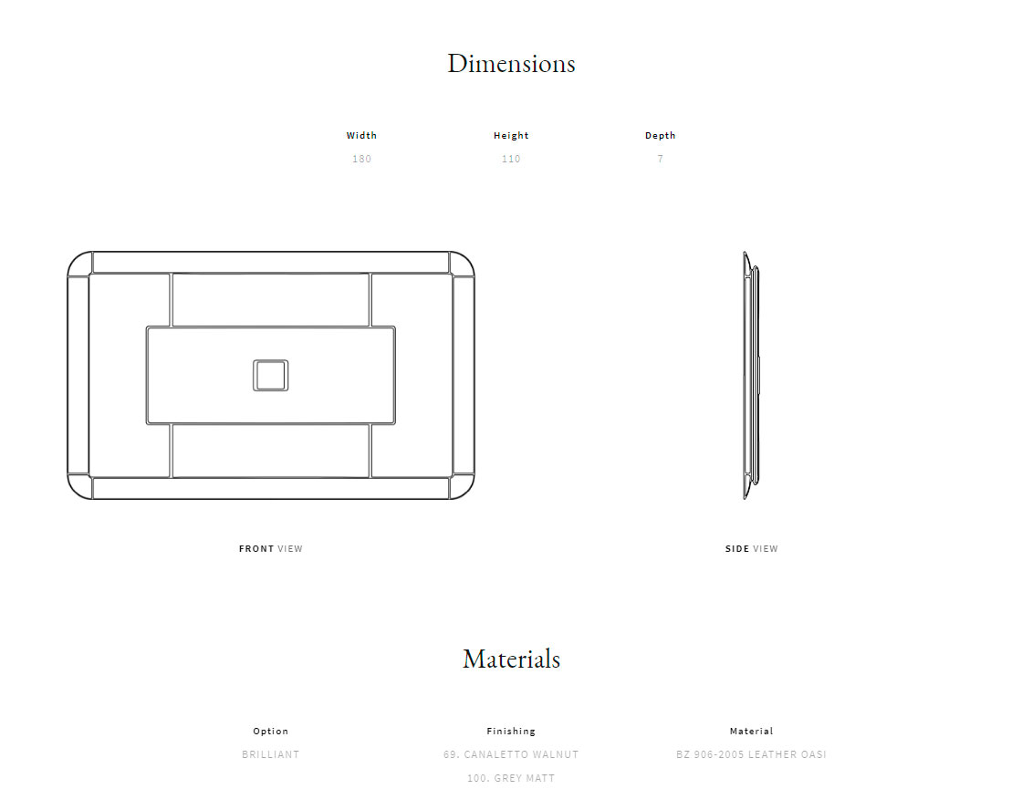 Canaletto walnut solid outer frame. Plywood back panel, decorated with quilted leather; central part in lacquered finishing.