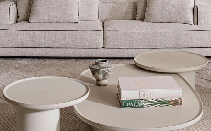 Vincent Van Duysen has designed Louisa, a set of round and oval coffee tables in which the presence of both wood and cement conveys an innovative tactile and aesthetic effect.