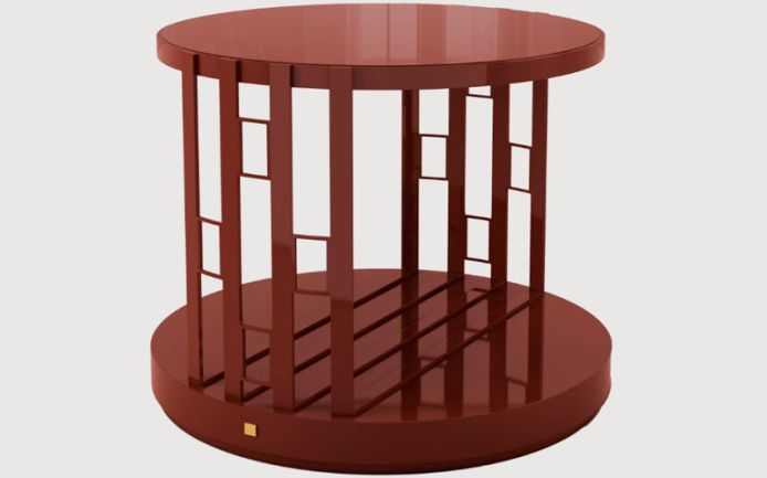 Steel frame. Plywood base and top. Available in lacquered finishing.