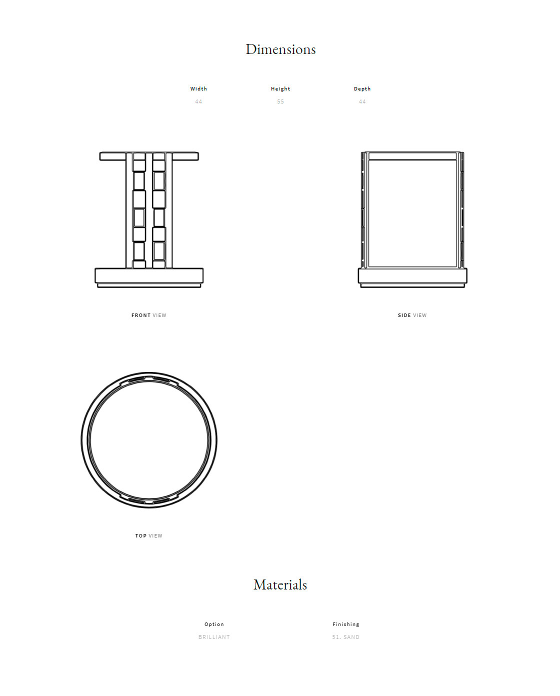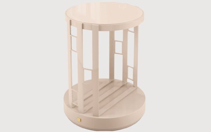 Steel frame. Plywood base and top. Available in lacquered finishing.