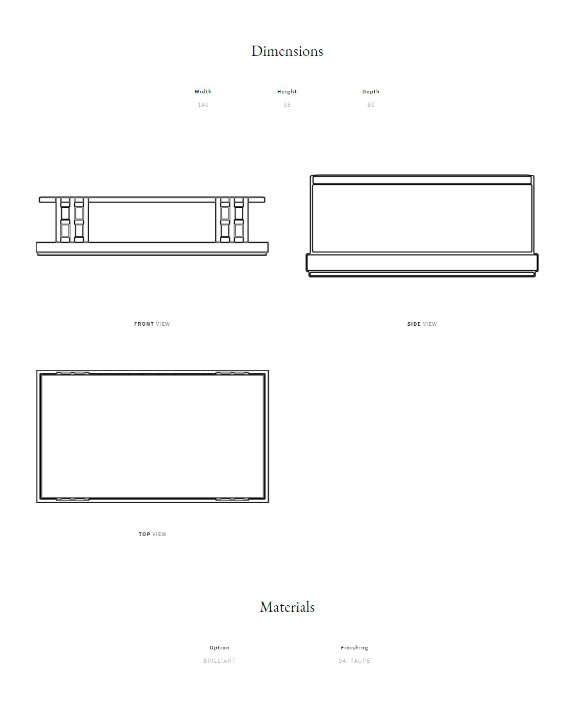 Steel frame. Plywood base and top. Available in lacquered finishing.