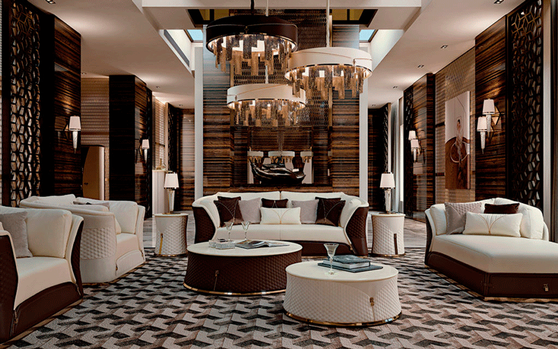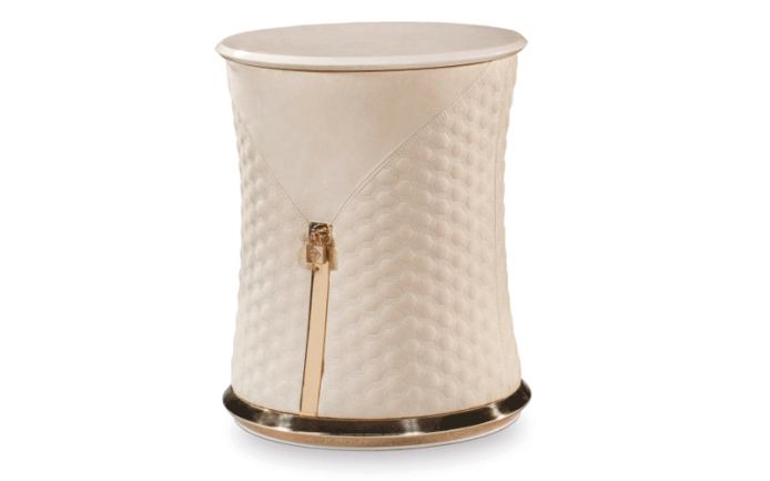 The coffee table of the Vogue collection is distinguished by refined and refined details that emphasize the exclusivity of the forms, the slightly flared structure is covered with quilted leather with decorative zippers made of golden metal, the faceted metal base is also made of golden metal. The table top can be made of marble or wood in a glossy finish. The Vogue collection coffee table is available in various finishes according to the samples.