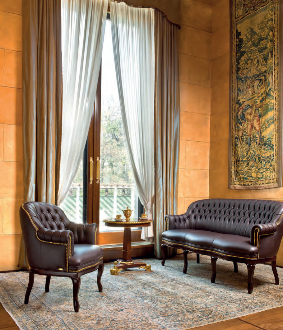 The Admiral Base office chair from the Italian factory Mascheroni is one of the classic models that reflects the craftsmanship of artisans through the traditional capitonnè carriage stitch on the back and armrests. The collection includes two- and three-seater sofas. The frame of the chair is made of solid wood. The packing material is a non-deformable foam rubber. The chair is covered with genuine leather of different shades from the collection "Mascheroni Leather Color System" and is finished with nails. The filler is organic polyurethane. Price segment: Premium Style: Classic Upholstery: Leather Decor: Leather inserts, Polished metal inserts Interior zone: Living room, Recreation area, Study Material: Solid hardwood Size LxWxH cm/Diameter ØxH cm: 83X84X105-112