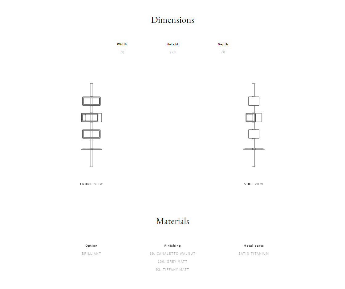 Solid wood and plywood structure. Outer structure available in lacquered wood or canaletto walnut veneer. Lacquered wood inner structure.