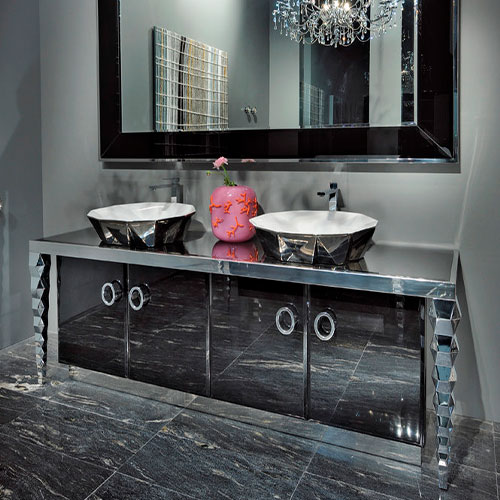 Single washbasin console 2 doors (right and left) and 1 internal shelf, or 2 baskets. Console for double washbasin 4 doors (right and left) and 2 internal shelves, or 4 baskets.