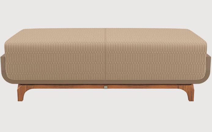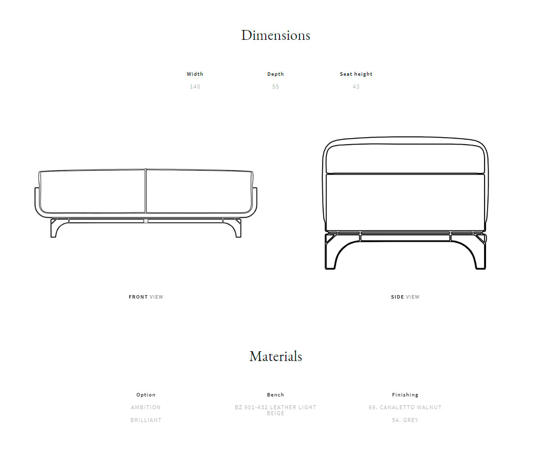Curved plywood frame. Canaletto walnut wooden feet. Quilted seating. Multiple densities polyurethane foam padding.