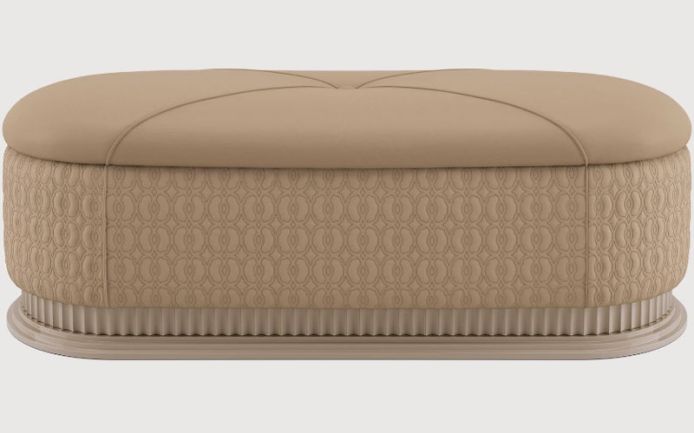 Solid wood frame; decorated wooden base. Quilted outer body. Multiple densities polyurethane foam padding.
