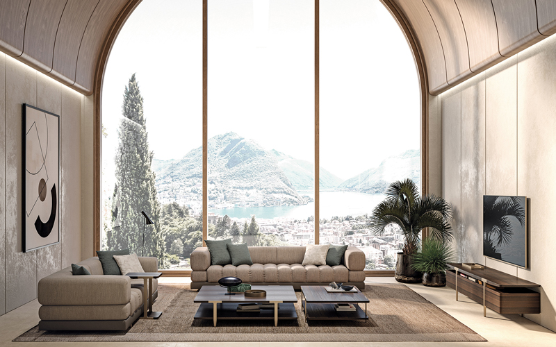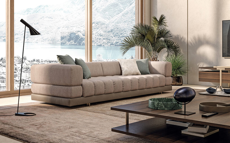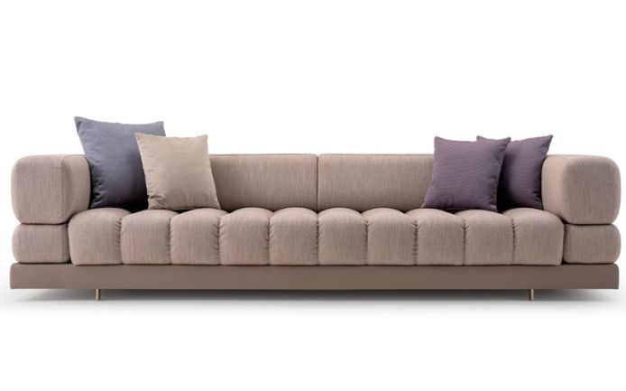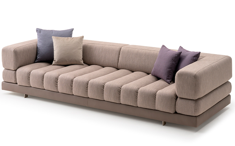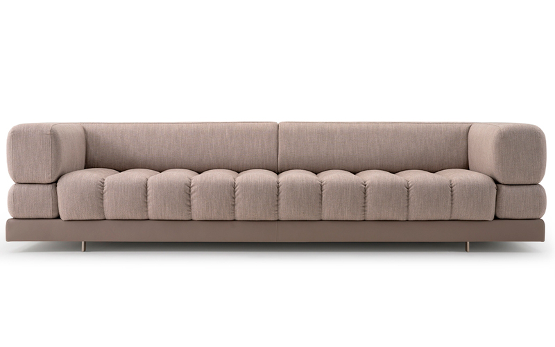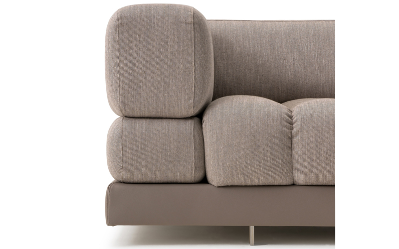 The sofa of the Domus collection is fully upholstered and consists of "cushions" that adorn the seat and back. Available in four different versions: armchair, 2-seater, 3-seater and 4-seater. It can be completely covered with fabric, completely covered with leather, or with the release of the base. The Domus sofa is available in various upholstery options according to the selection of samples.