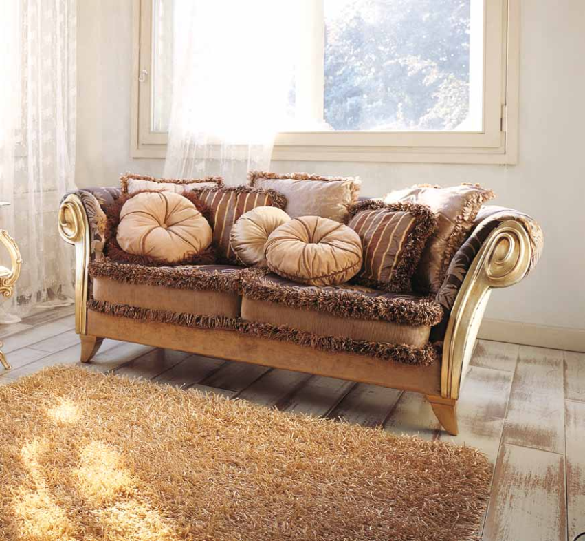 The rich and comfortable armchairs and sofas of the Geneva collection are elegantly completed by carved small tables of the Rialto collection realized with the Testa di Moro polishing.