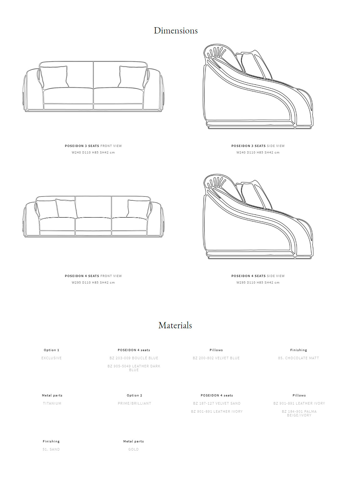 Leather, Polyurethane foam, Tencel, Wood