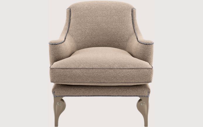 Solid wood frame; handcarved wooden feet. Finished with nails. Seat cushions in natural feather.