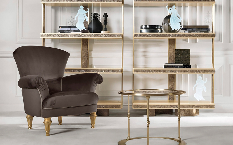 In the Rivoli collection, the sumptuous velvet upholstery and the gold leaf finish legs help to create a luminous and refined piece of furnishing that perfectly expresses the concept of "New Era", the new dimension of the classic style in which tradition and experimentation meet.