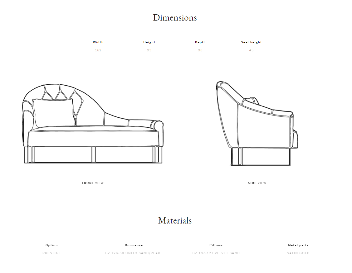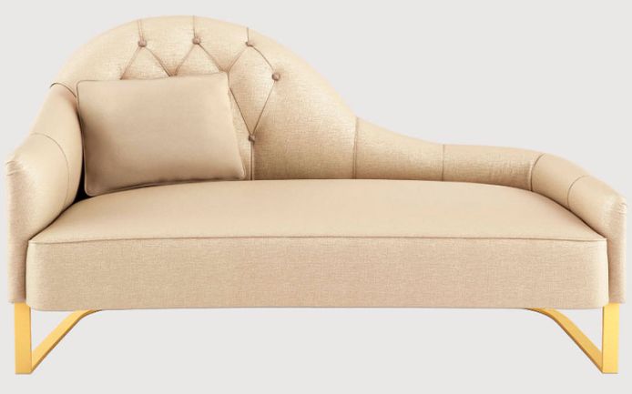 Solid wood frame; satin metal base. Capitonné backrest. Multiple densities polyurethane foam seating.