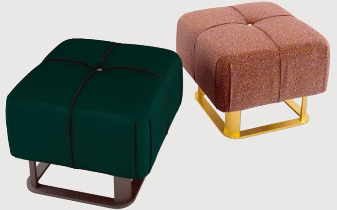 Solid wood frame; metal base. Multiple densities polyurethane foam padding.