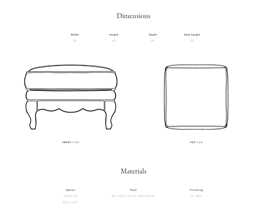 Solid wood frame; shaped wooden base. Cushion seating in natural feather with polyurethane insert.