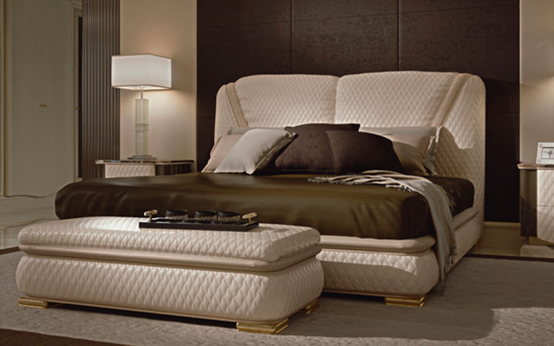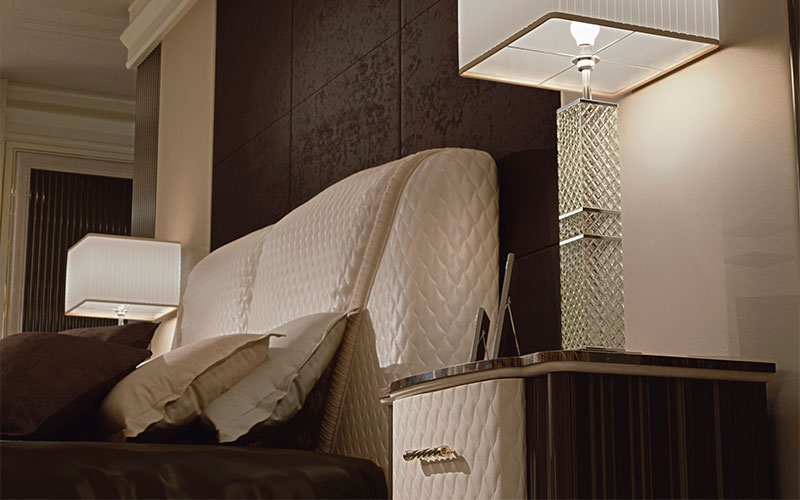 Elegant contemporary style bed with upholstered headboard characterized by an elegant quilting. GIADA is a real masterpiece of made in Italy artistic craftsmanship that arises from the long work of masters of art with decades of experience.