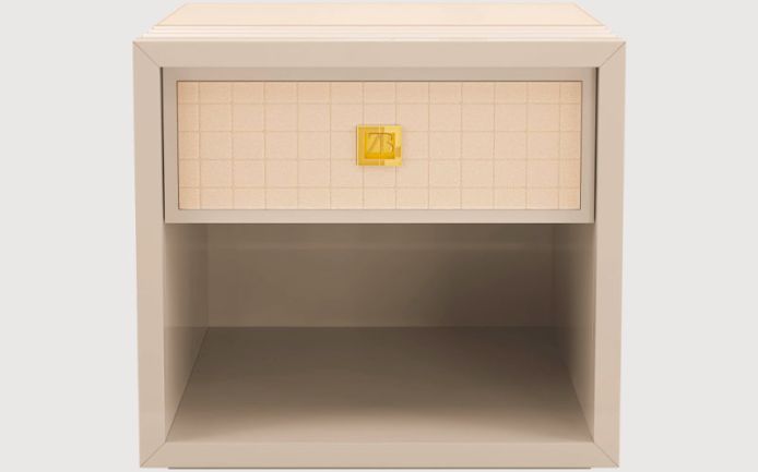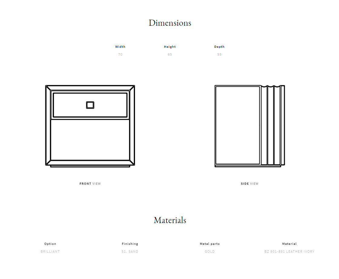Solid wood and plywood structure. Top and outer structure padded in leather. Quilted leather front drawers. Brass handles.
