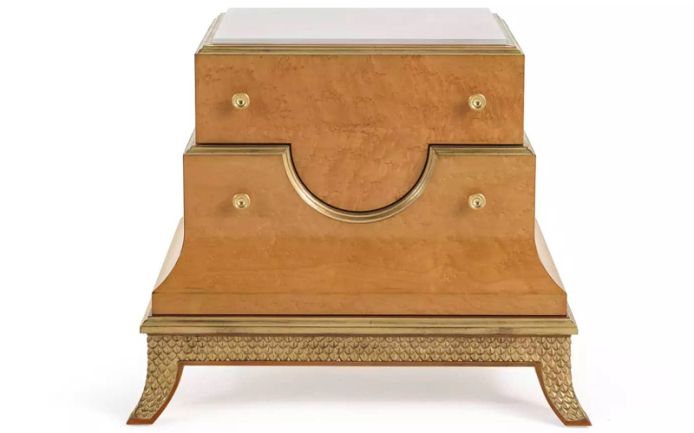 Pleasure is a line of furnishings with linear and essential shapes, characterized by an elegant and refined charm. The night tables of the collection, in deco style, feature a structure in maple with glossy finishing, details with antique gold finishing and marble top.