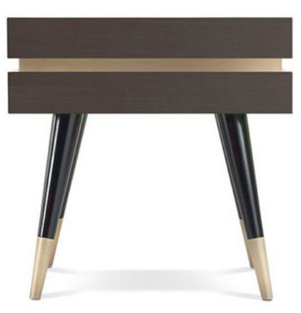 Il comodino Sean con impiallacciatura in legno Tay si distingue per la presenza di gambe inclinate e cassetti senza maniglie con finitura bronzo. Un mix di materiali vintage, caldi e naturali per una camera da letto elegante e accogliente.