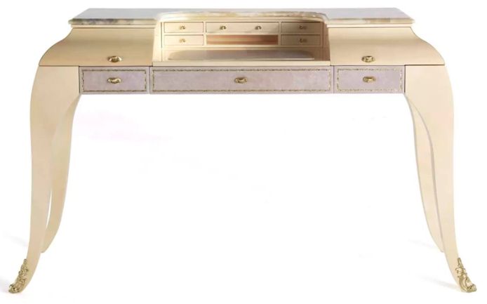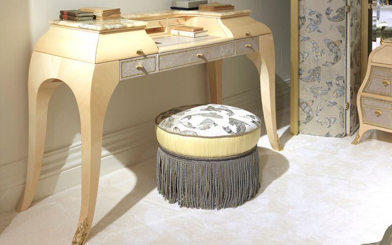 The Madeleine line elegantly expresses the encounter between classic styles and clean, contemporary lines. The sophistication of the furniture line is expressed in a luminous combination of delicate shades. The combination of precious and sensual materials, such as marble, onyx and leather, create a luminous mix recalling the splendour of the settings of the Palace of Versailles.