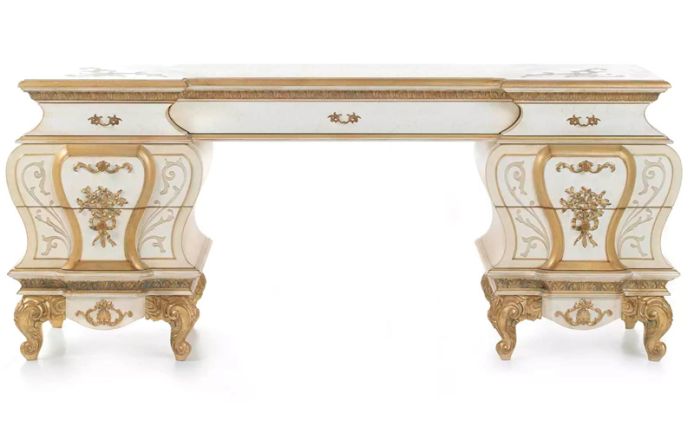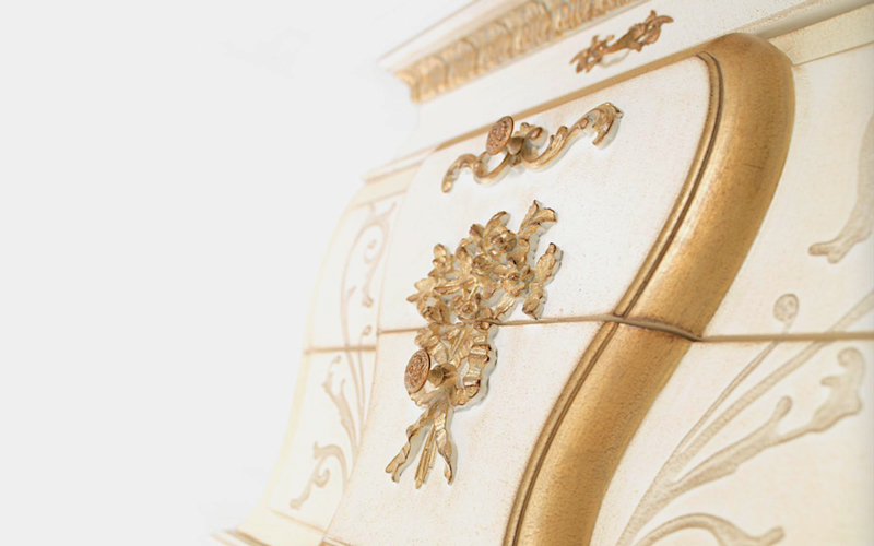 Scarlett is a line of refined Louis XV style pieces of furniture. Characterized by sinuous curved lines, the dressing tables of the collection feature a structure with light oak finishing and gold decorations which enhance the setting lending the piece of furniture a high decorative and artisanal value.