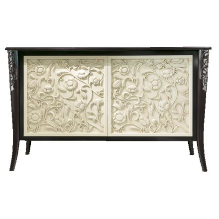 Glossy white finish and a table top made of heat-treated oak with scorch marks. The case has the same shiny white shade, which gives modernity and style to the interior.
