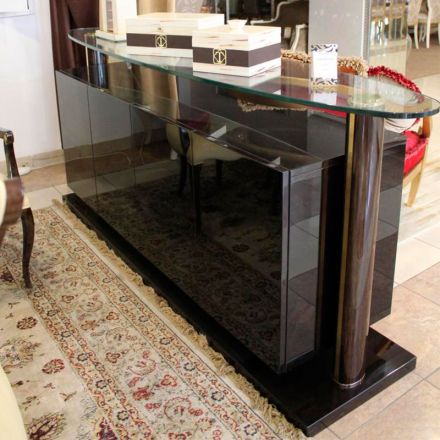 The frame is made of wood. The tabletop is made of glass. Handmade decor. The 4-door sideboard is made in a classic style. Decorate the dining room, living room.