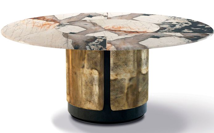 Main structure in concrete and polished aluminium cast with surface treated and pigmented by hand. The armed concrete part is made even more material due to the exclusive erosion treatment and the matt black colour.