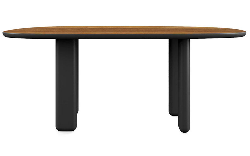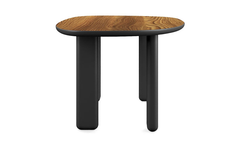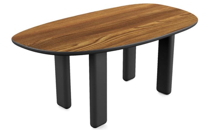 The wood grain runs along the irregularly shaped surface for a new concept of conviatizza made of irregular and essential shapes.