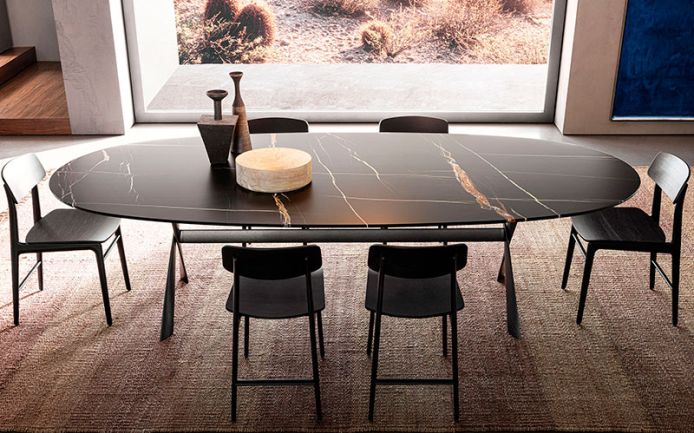 This table, designed by Milanese architect Rodolfo Dordoni, takes the name of London’s Gatwick airport, one of the busiest in the world.