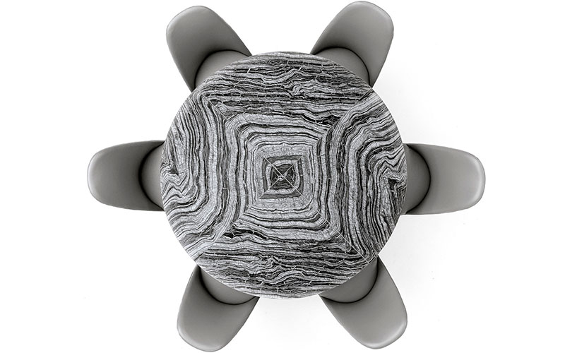 Black Kenya Marble Top Round Table. Base details in satin black nickel stainless steel with lasered Giorgio Collection logo.