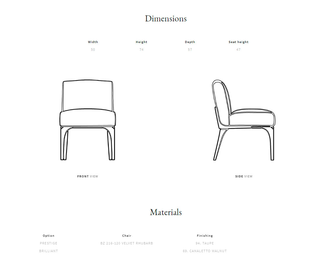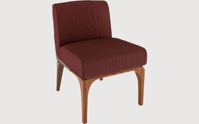 Solid wood frame. Canaletto walnut front feet. Quilted backrest and seating. Multiple densities polyurethane foam padding.