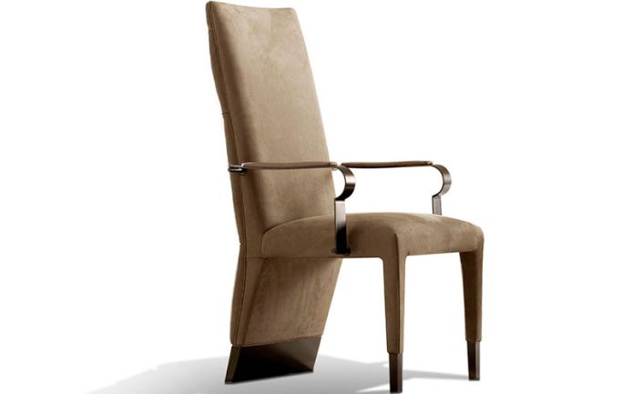 Arm chair completely upholstered w/buttoned back. Bronzed brass arms and back base with Giorgio Collection logo insert, 2 fronts legs in bronzed brass.