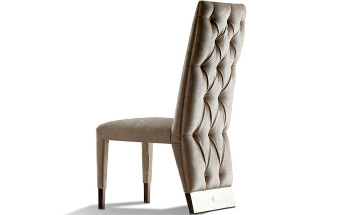 Side chair completely upholstered w/buttoned back. Bronzed brass arms and back base with Giorgio Collection logo insert, 2 fronts legs in bronzed brass.